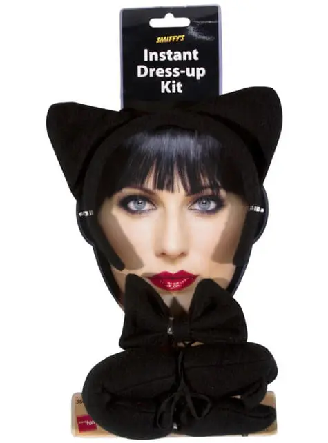 Includes a black tiara with cat ears, bow tie and tail.