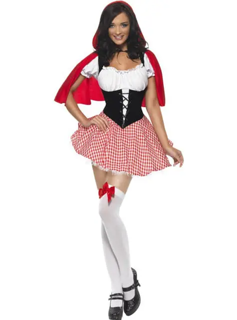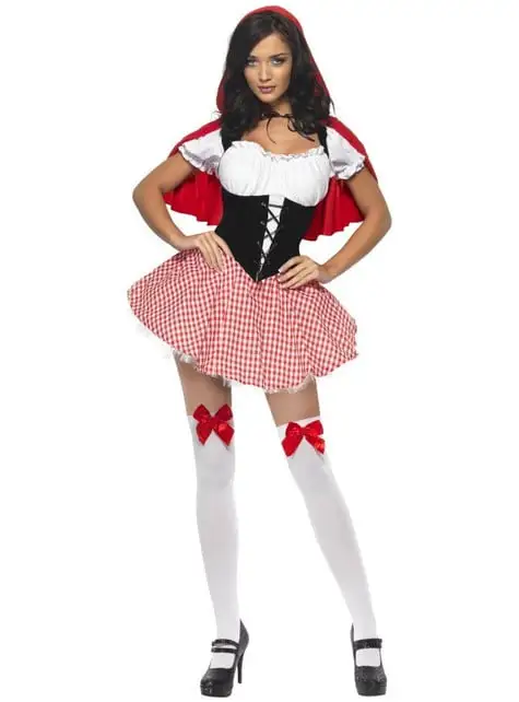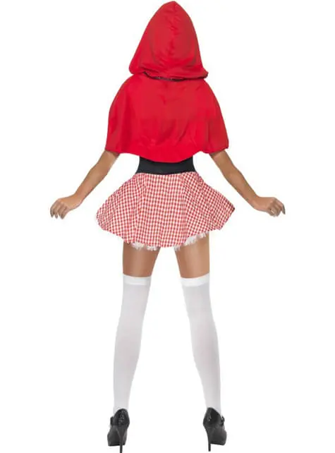 Includes a corset style minidress with a red hooded cape.